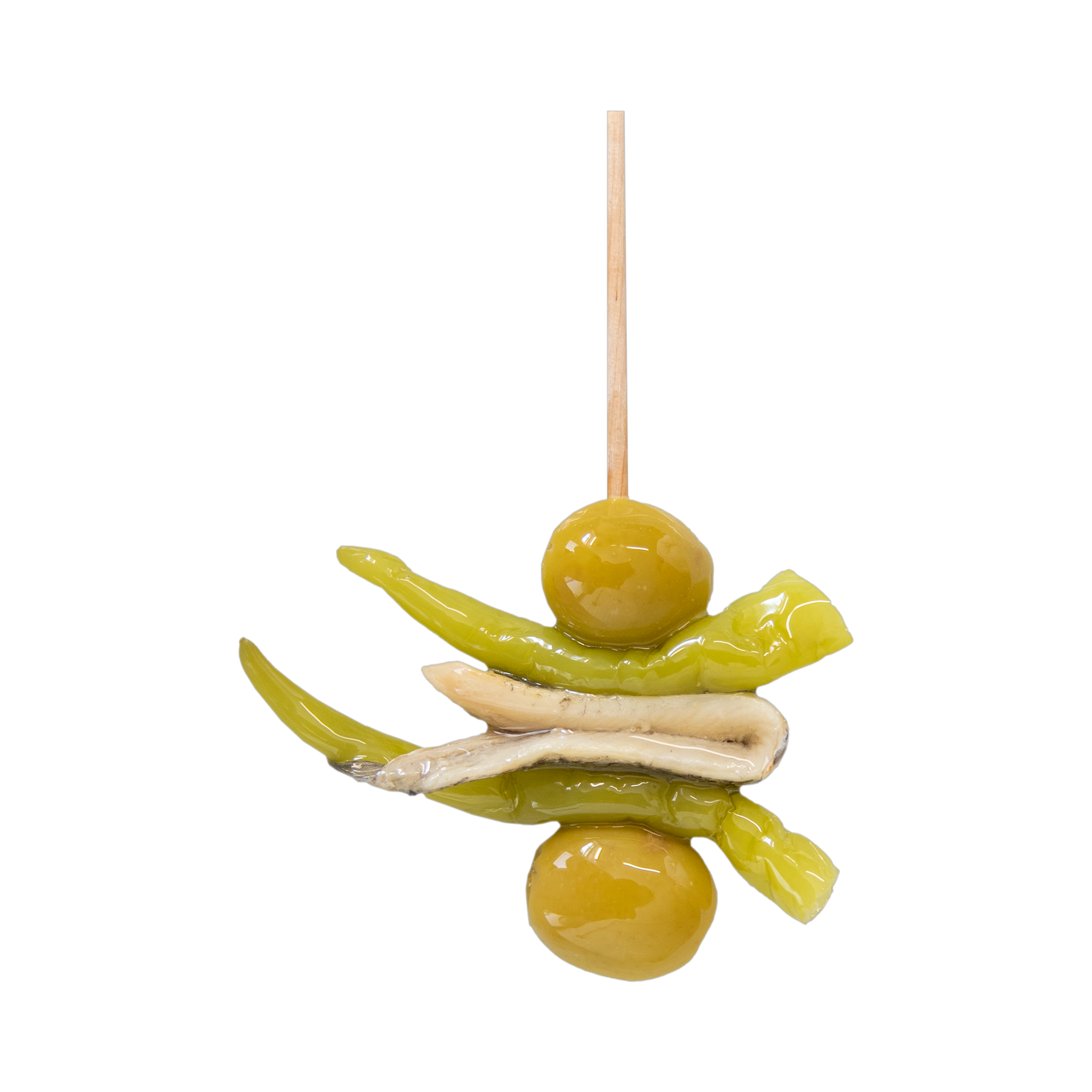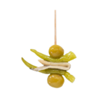 Las Gildas de Boquerón son un producto elaborado con ingredientes seleccionados, compuesto por dos aceitunas verdes, dos piparras y un boquerón en vinagre, ensartados en un palillo de madera. Se presentan listas para el consumo y envasadas para garantizar su frescura y calidad.