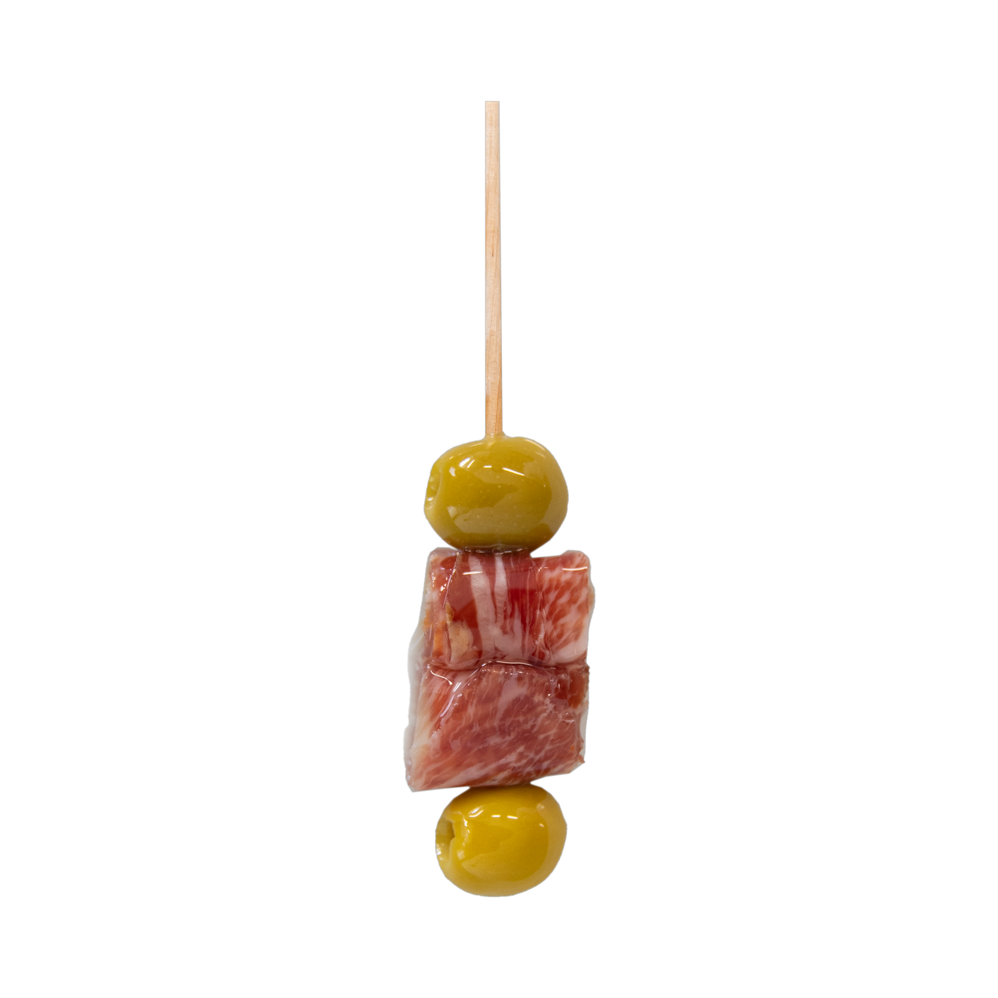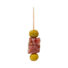 2 aceitunas verdes, 2 cubos de queso y 1 loncha de lomo,